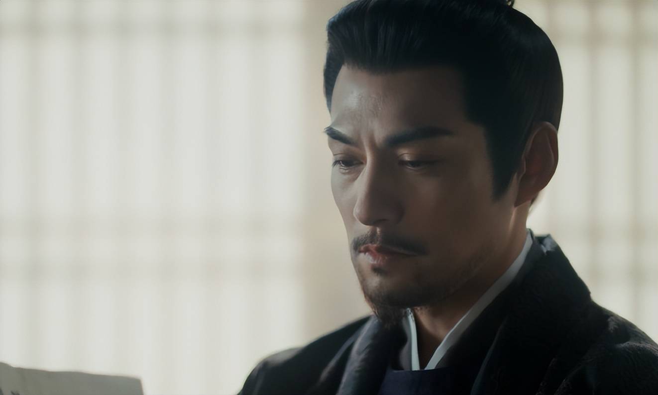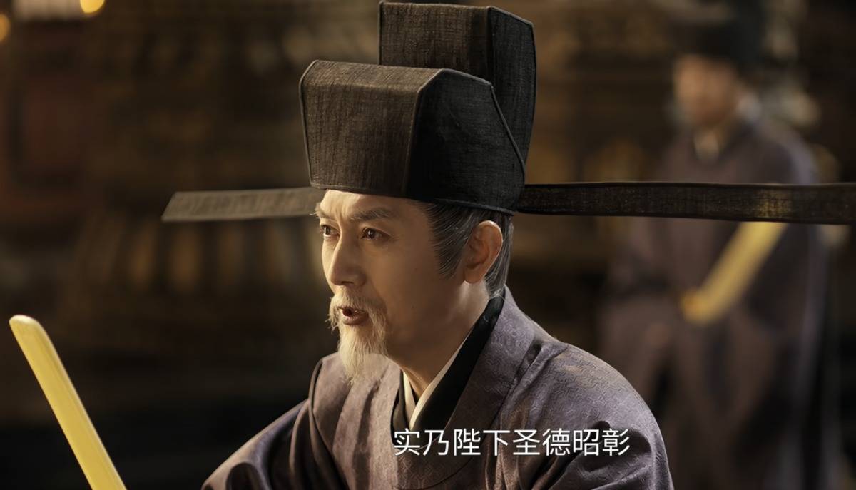 深紫官袍加身,身姿挺拔如松,一句低沉且富有磁性的“陛下,臣来晚了”,可谓是先声夺人,愣是让皇帝都不敢大小声了。